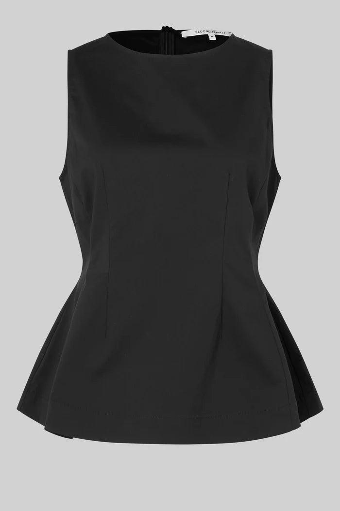 El Aria Top de Second Female es un básico elegante con un acabado femenino. Confeccionado en una mezcla suave y lisa de algodón, se ajusta con delicadeza gracias a sus costuras entalladas en la cintura, que crean un sutil efecto péplum. Presenta un cierre trasero con cremallera oculta y un corte slim fit que realza la silueta de forma sofisticada.