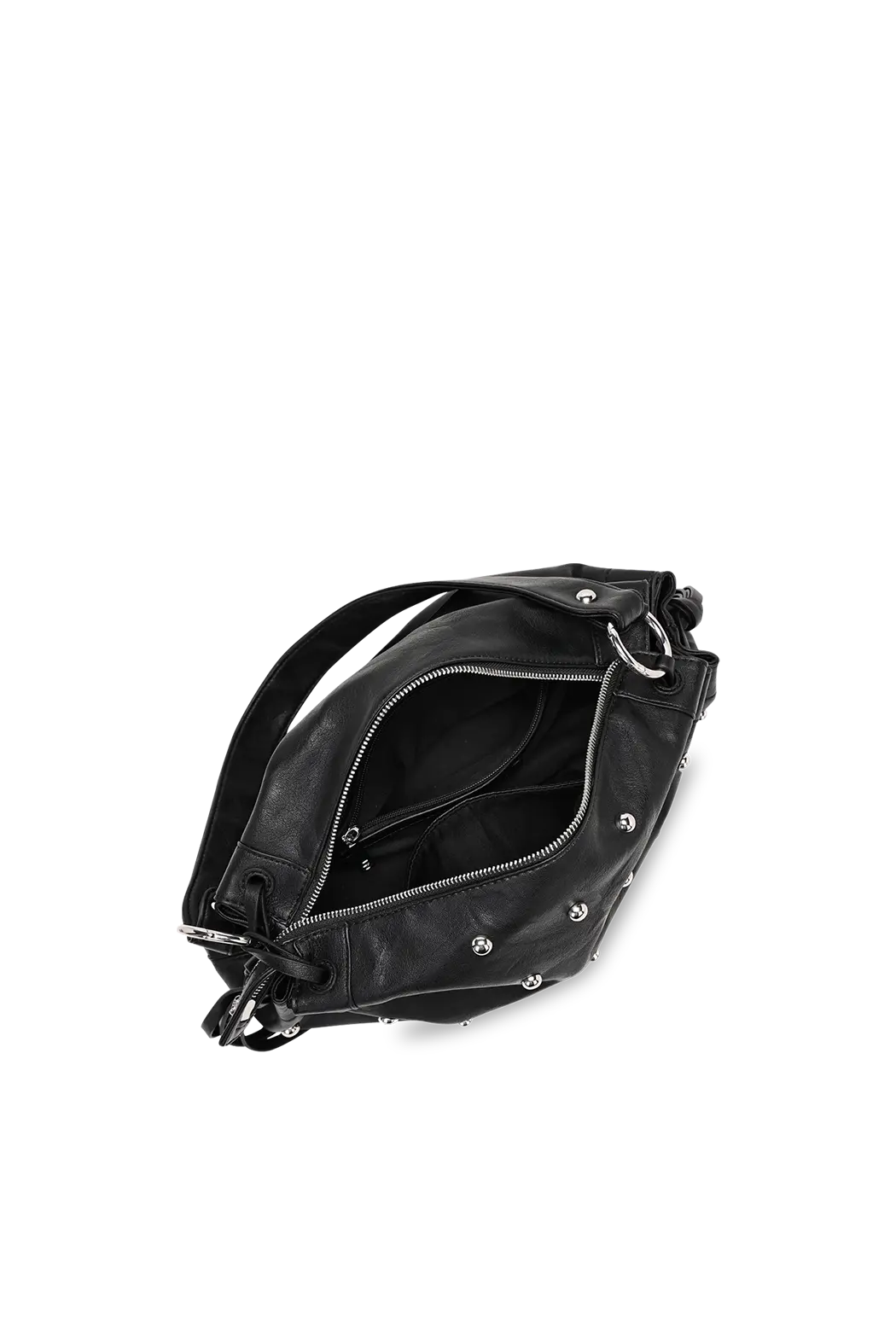 Versión rockera del clásico bolso Iris, decorado con tachuelas metálicas plateadas. Ideal para darle carácter a un look casual o de noche.