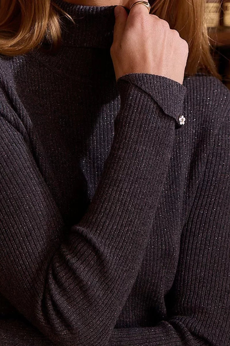 Jersey de punto gris, corte clásico y tejido suave. Cuello redondo y manga larga.