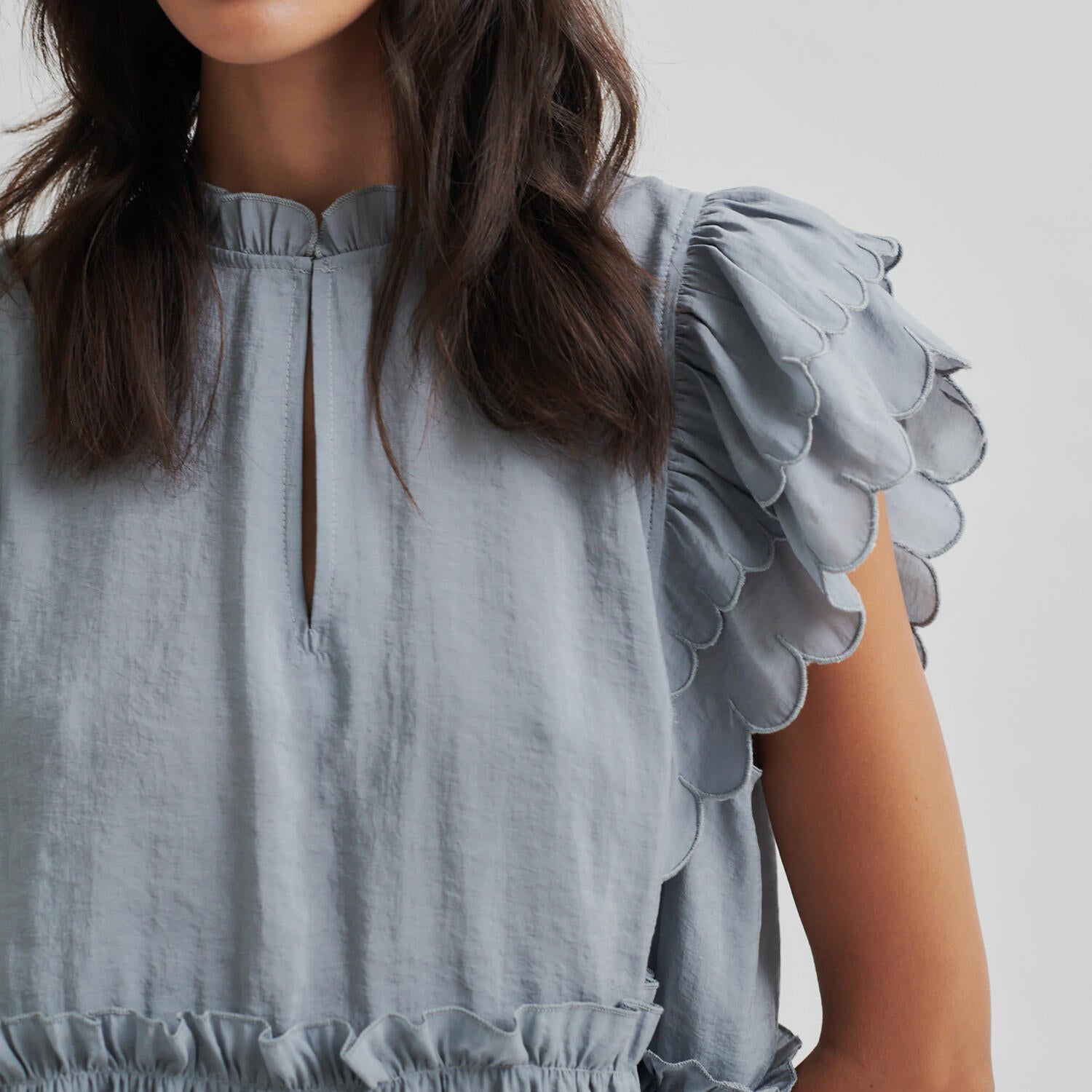 Porque aporta feminidad y ligereza a cualquier look, con volantes delicados que lo hacen especial sin perder comodidad ni versatilidad.